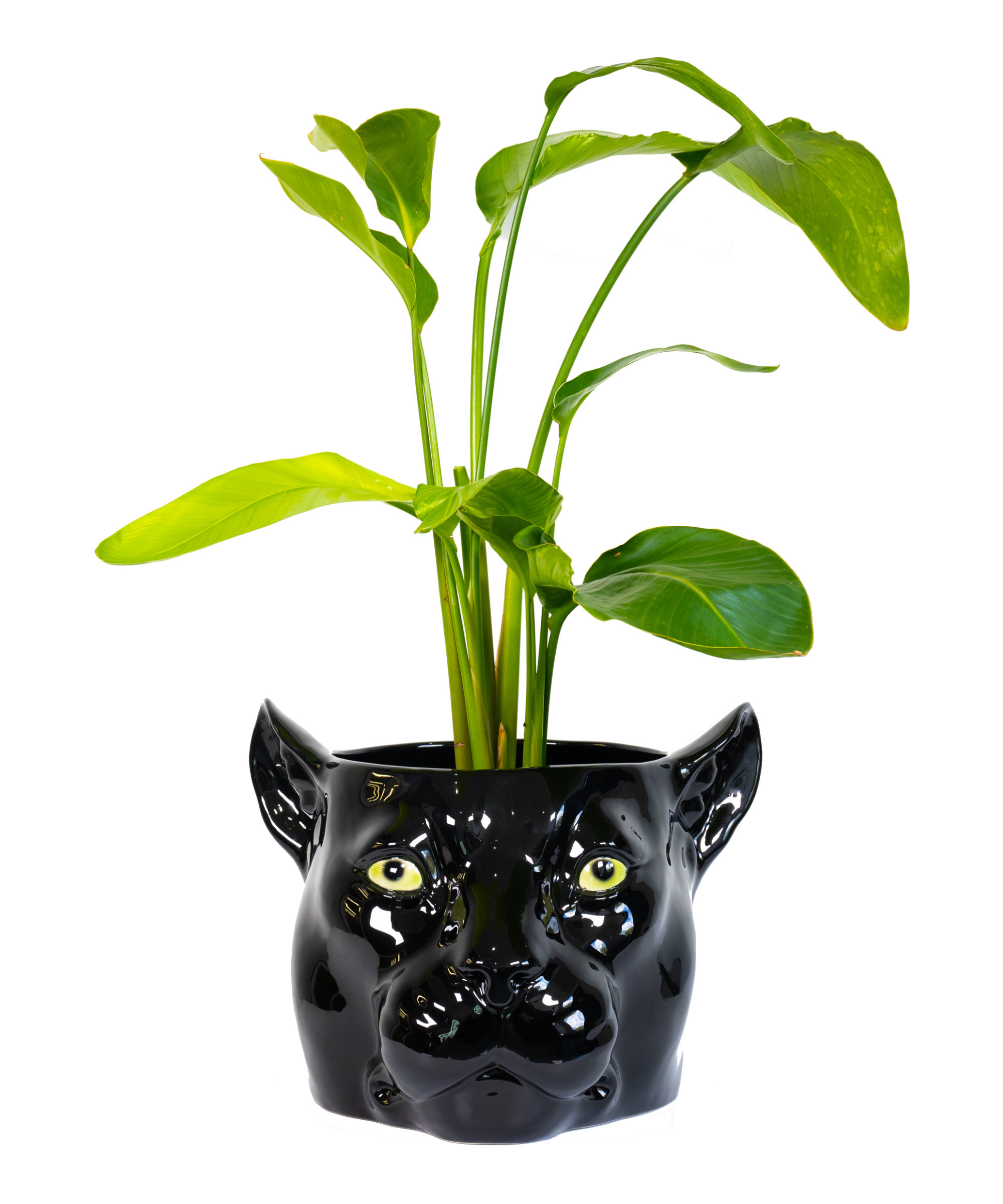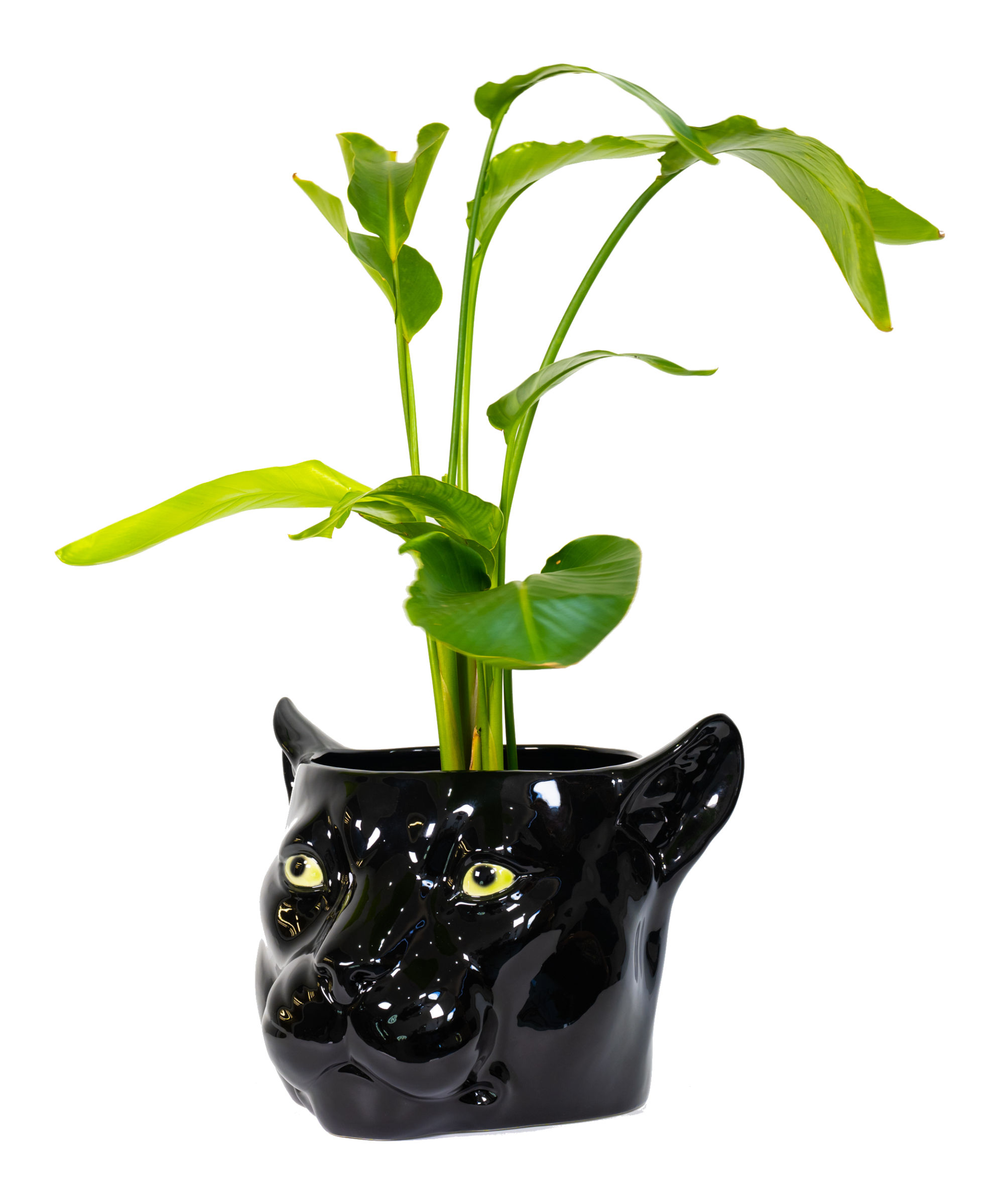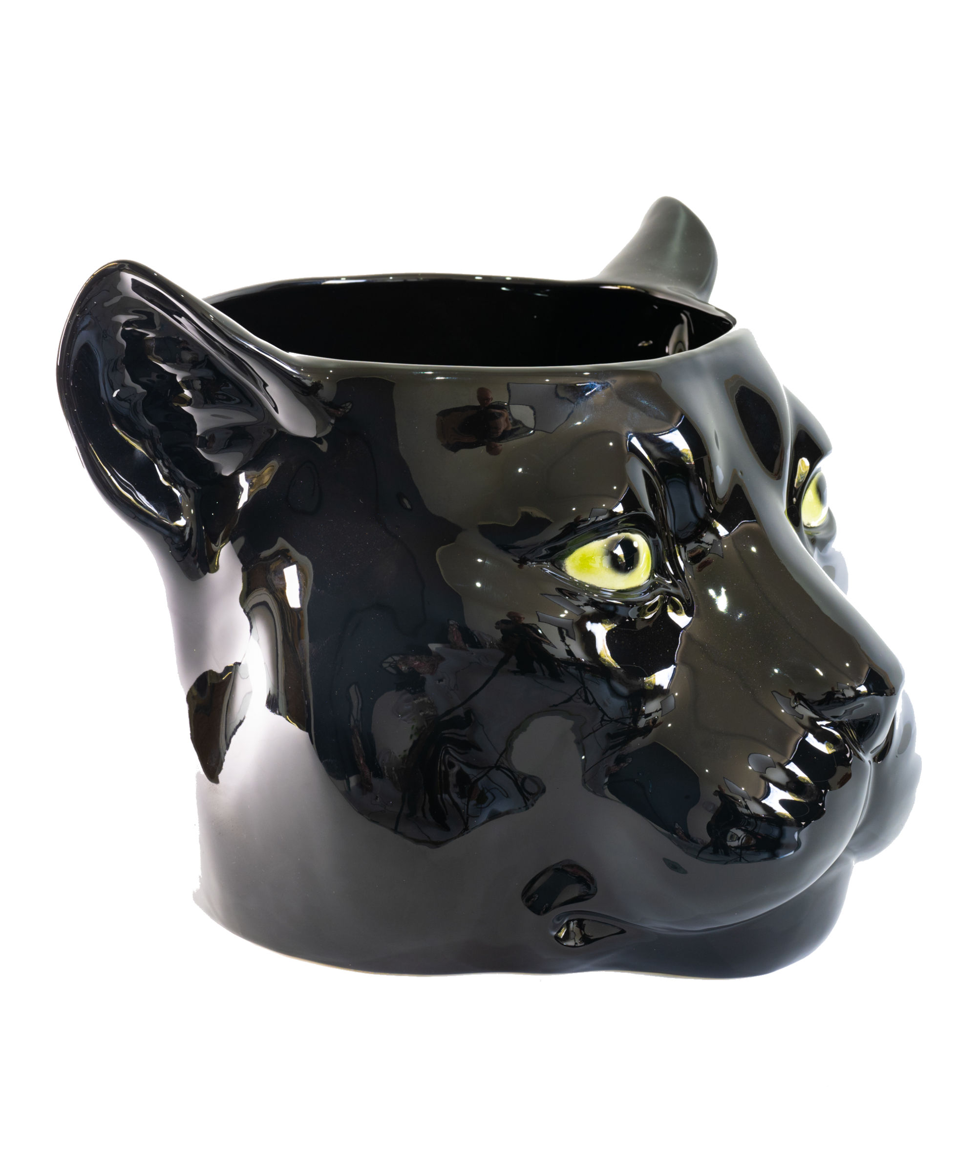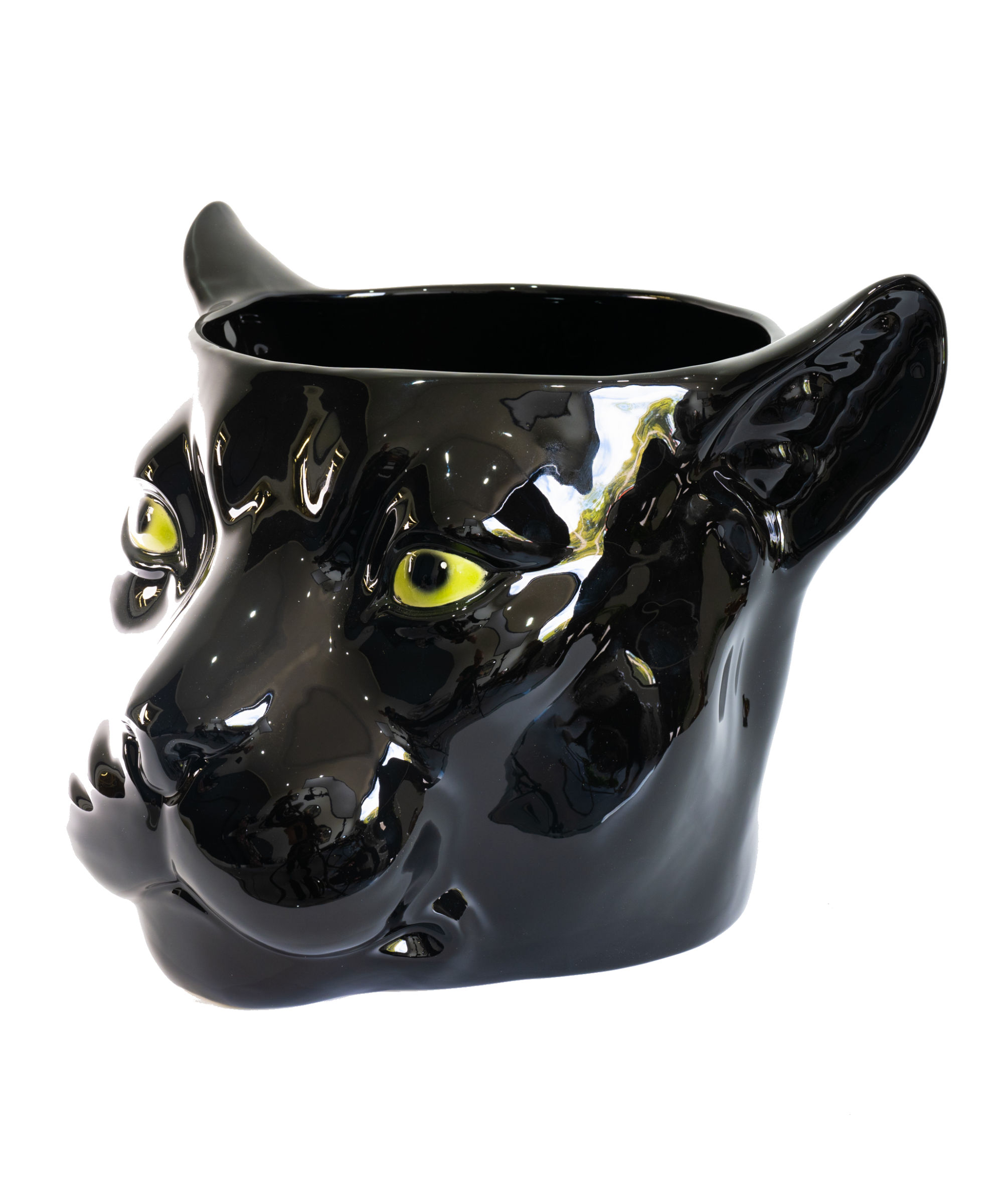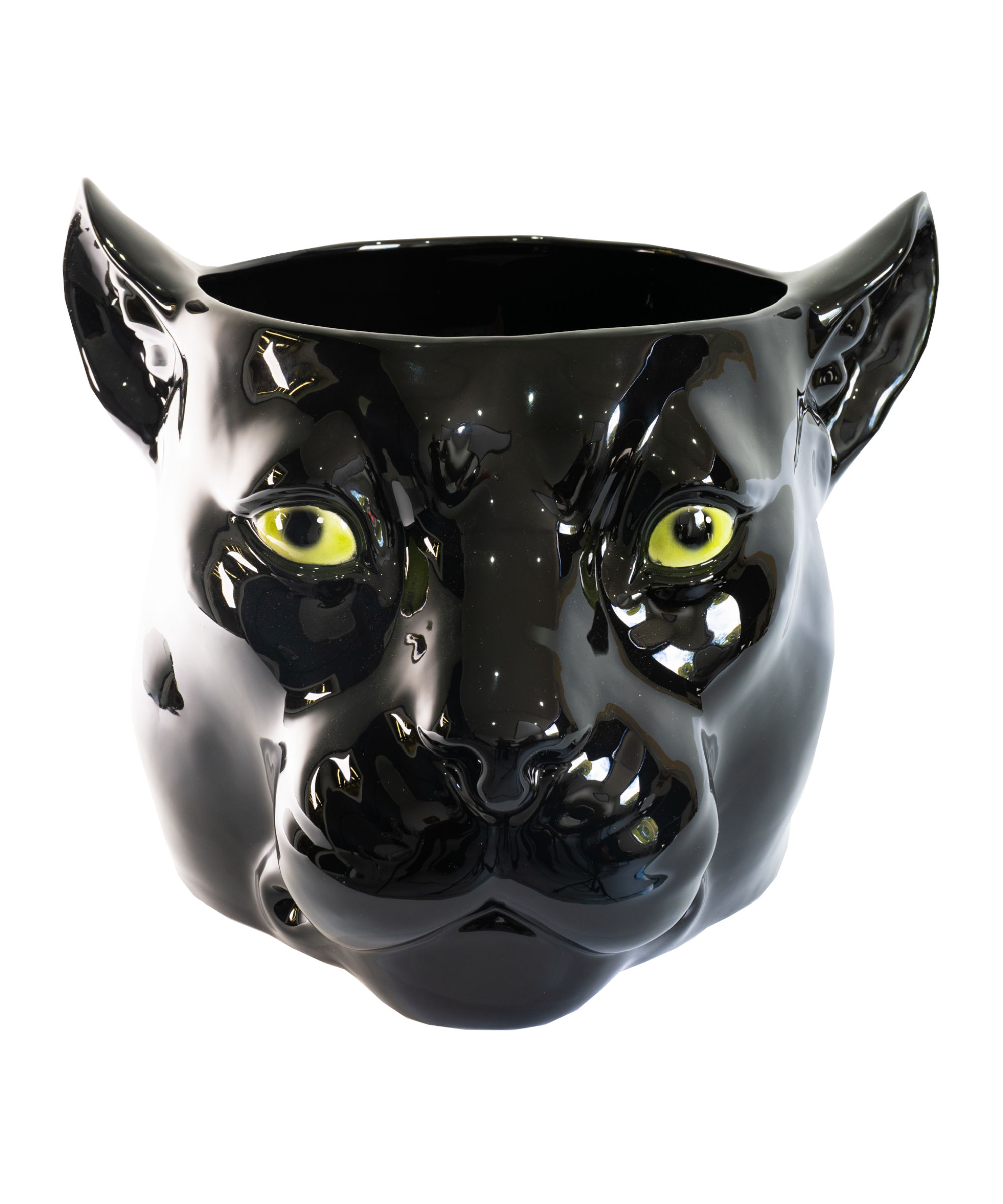 Minimalist in design, this black panther ceramic porto vaso depicting Coco panther statue is striking with its emerald eyes.