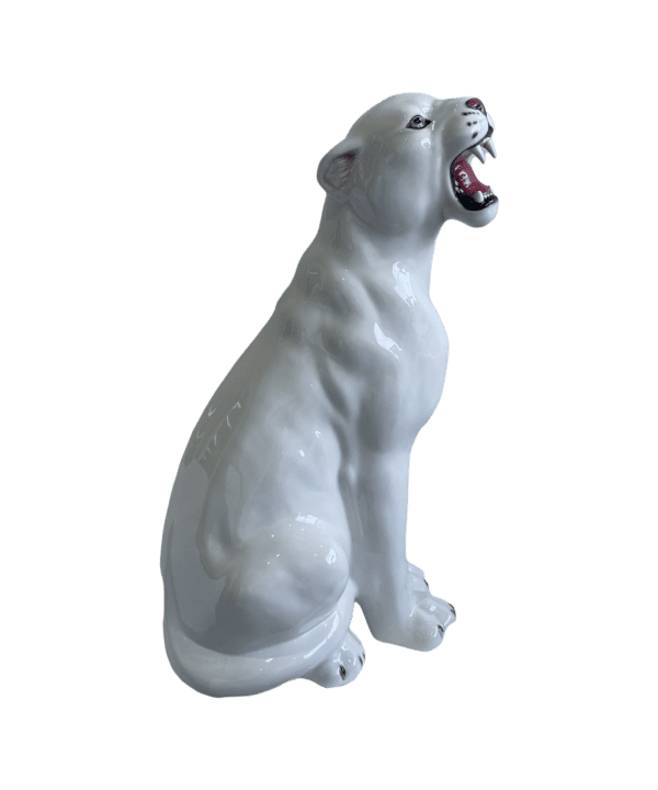 Freddie with his captivating emerald green eyes and sleek snow white coat is both fierce and beautiful. A ceramic sculpture that truly encapsulates the very essence of the wild.
