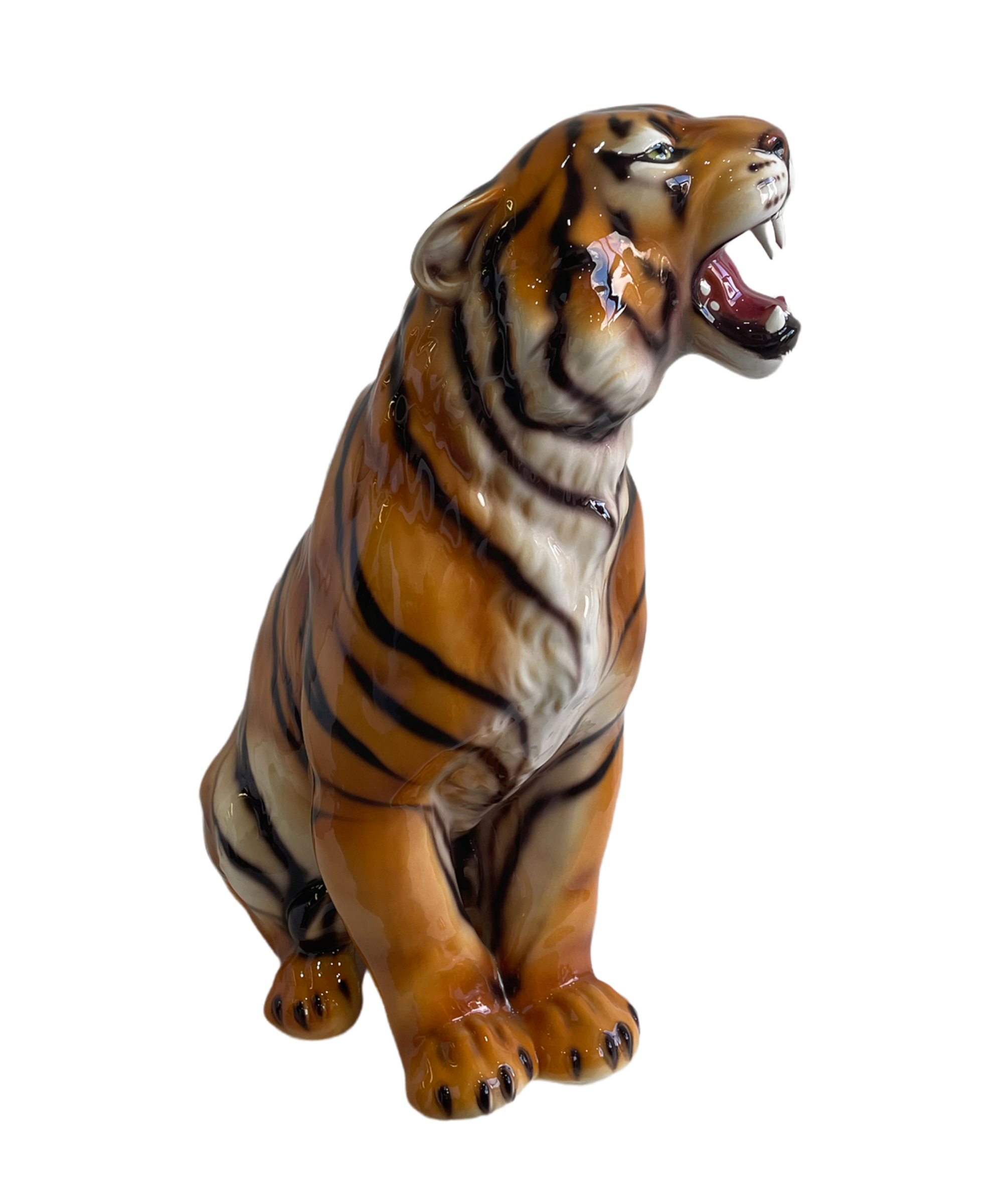 Gianni, a stunning interpretation of the powerful tiger with his easily recognizable dark vertical stripes that are unique in each individual. Ferocious, sophisticated, royal.