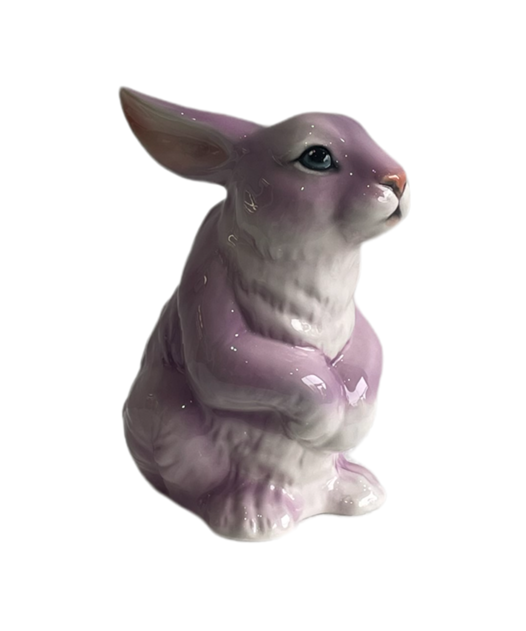 A fantastical take on the beautiful bunny, a ceramic vision of beauty captures her lilac fur, floppy ears and a perfect little cotton tail.