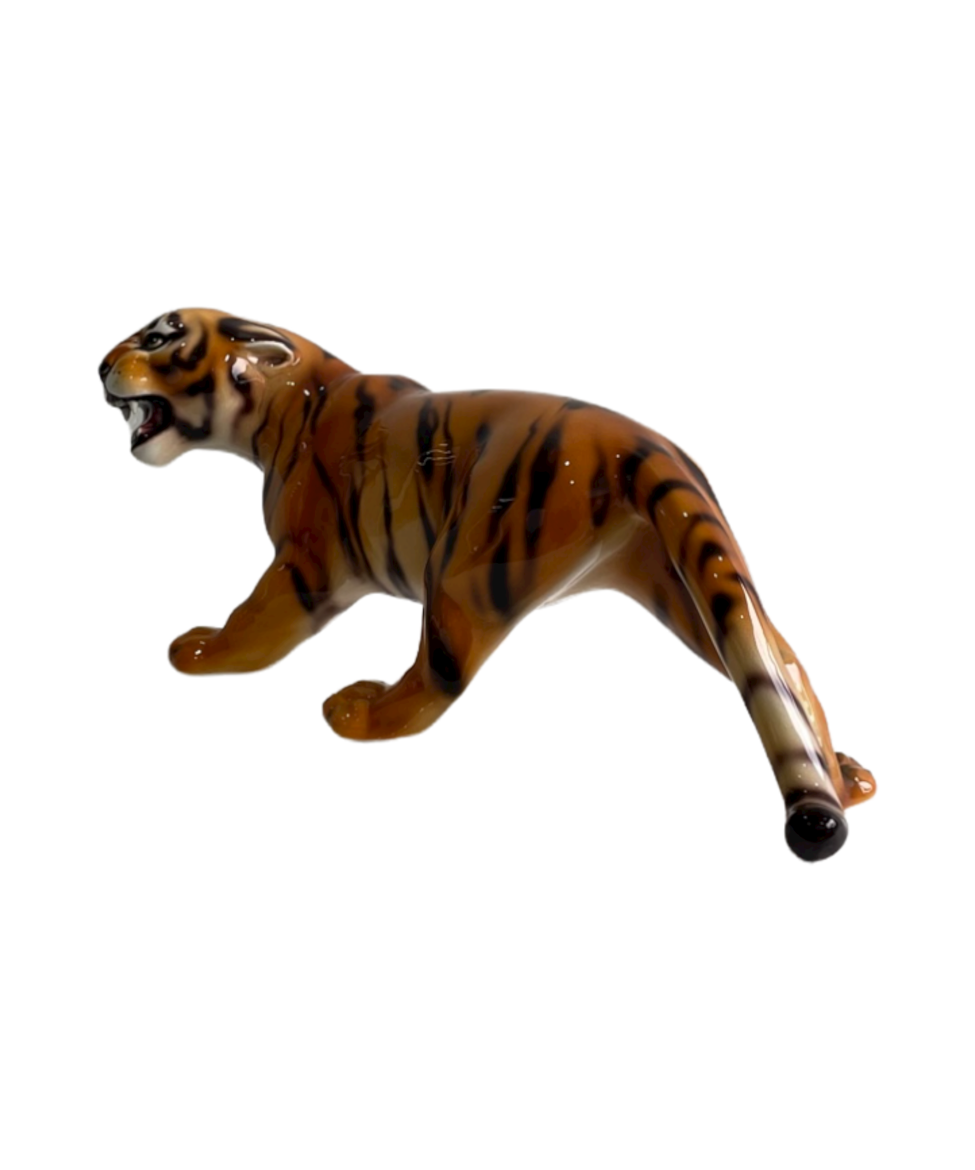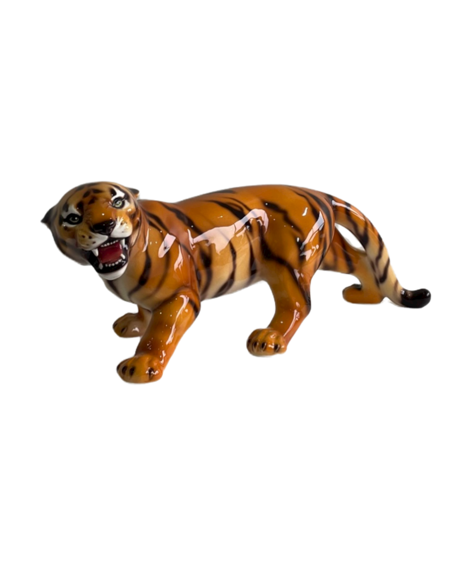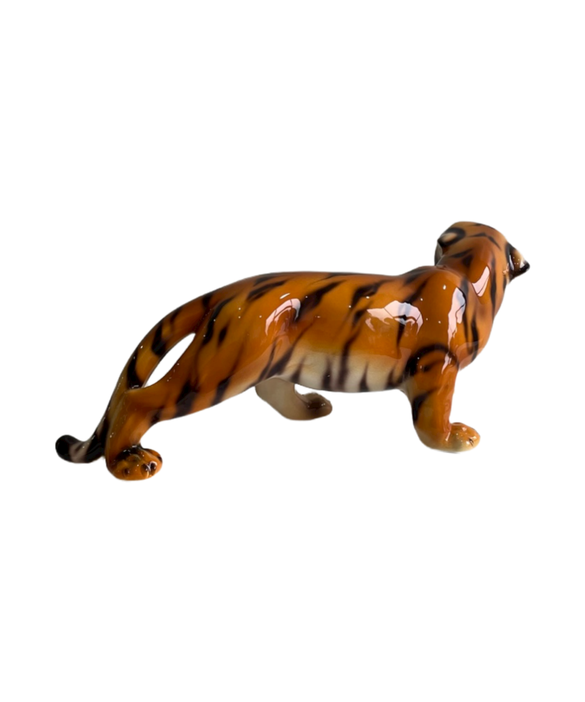 The crouched tiger is a spectacular handcrafted imitation of the wild cat captured through ceramic sculpture, individually painted which makes each of its markings unique.