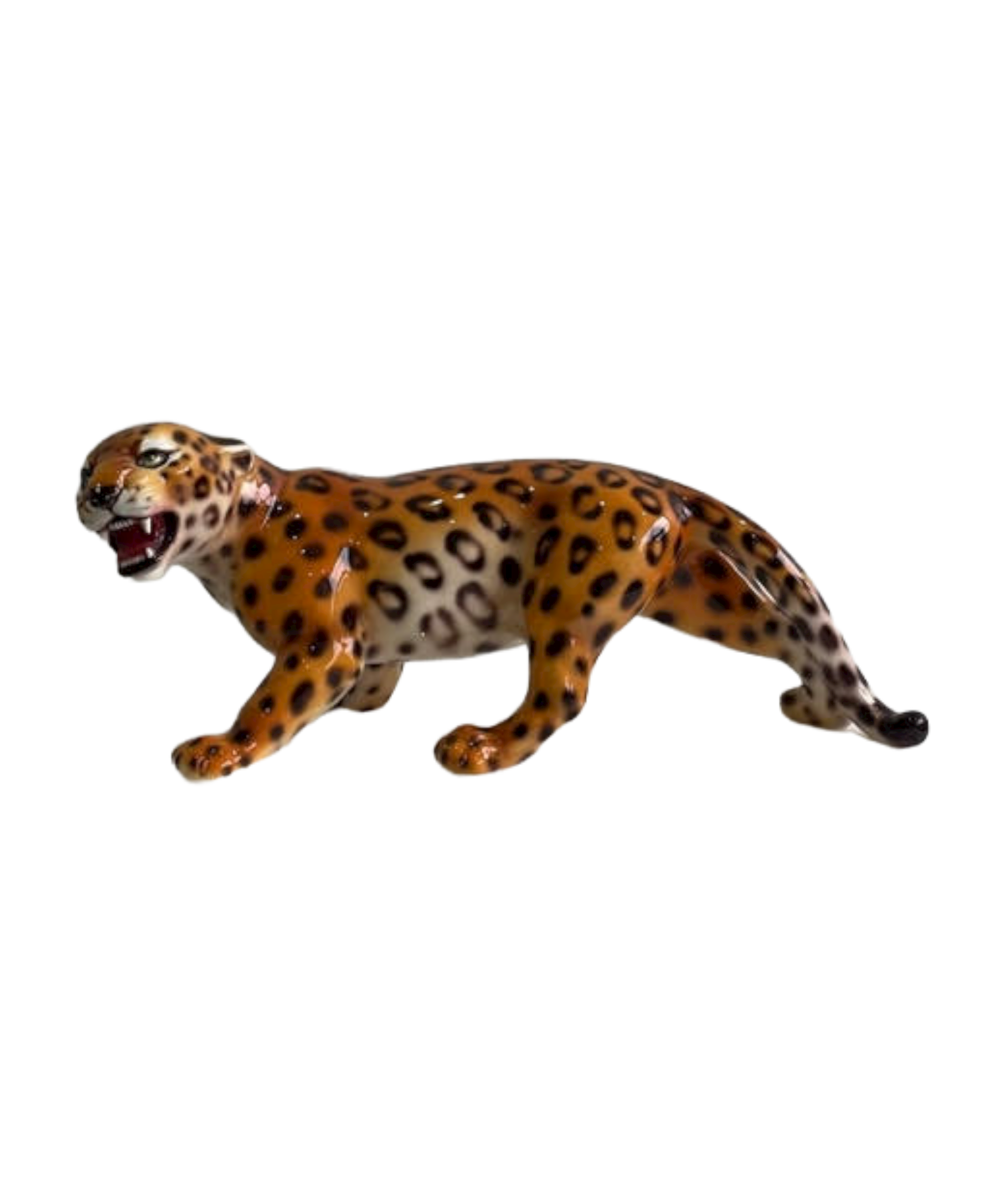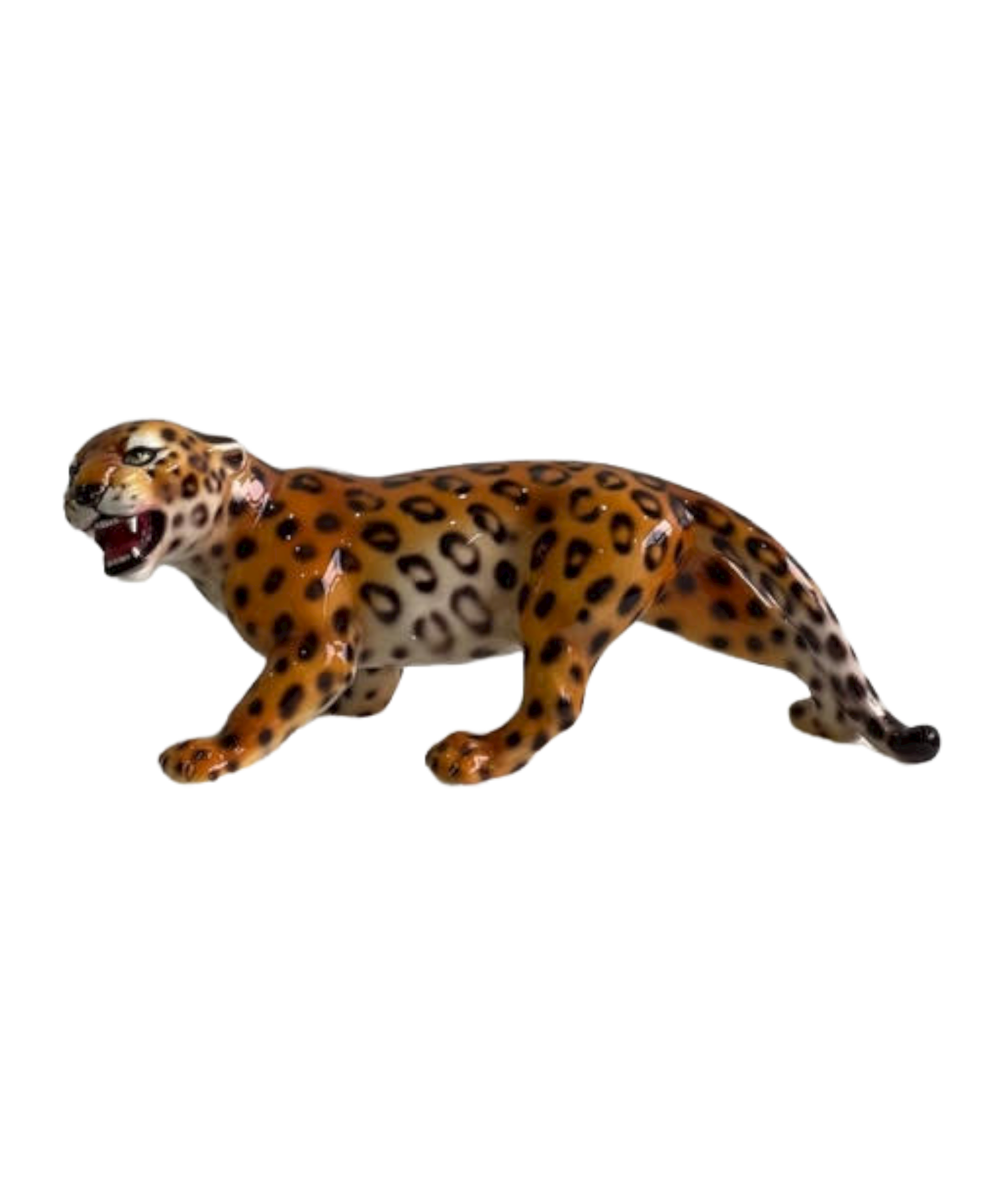The crouched leopard is a spectacular handcrafted imitation of the wild cat captured through ceramic sculpture, individually painted which makes each of its markings unique.
