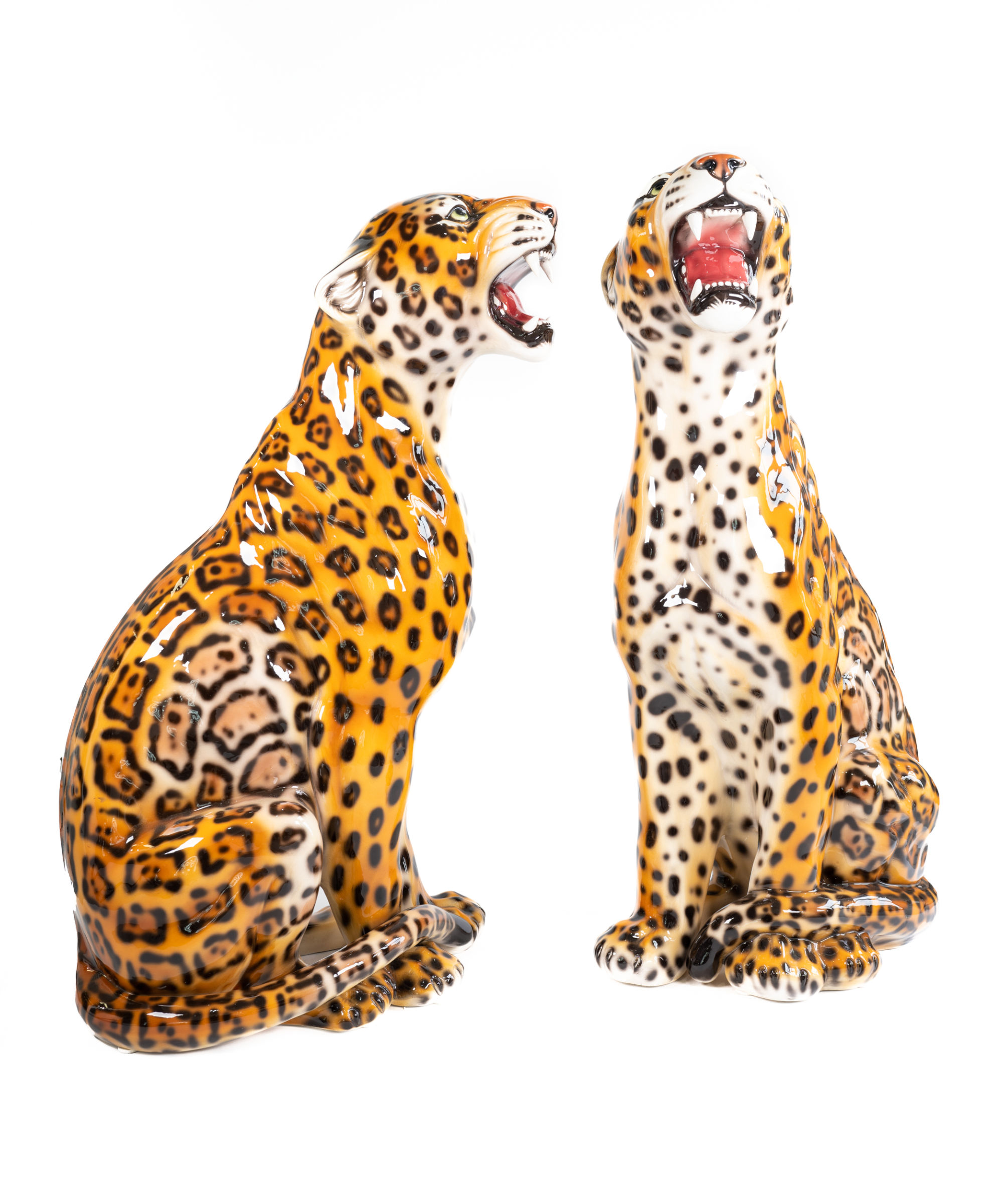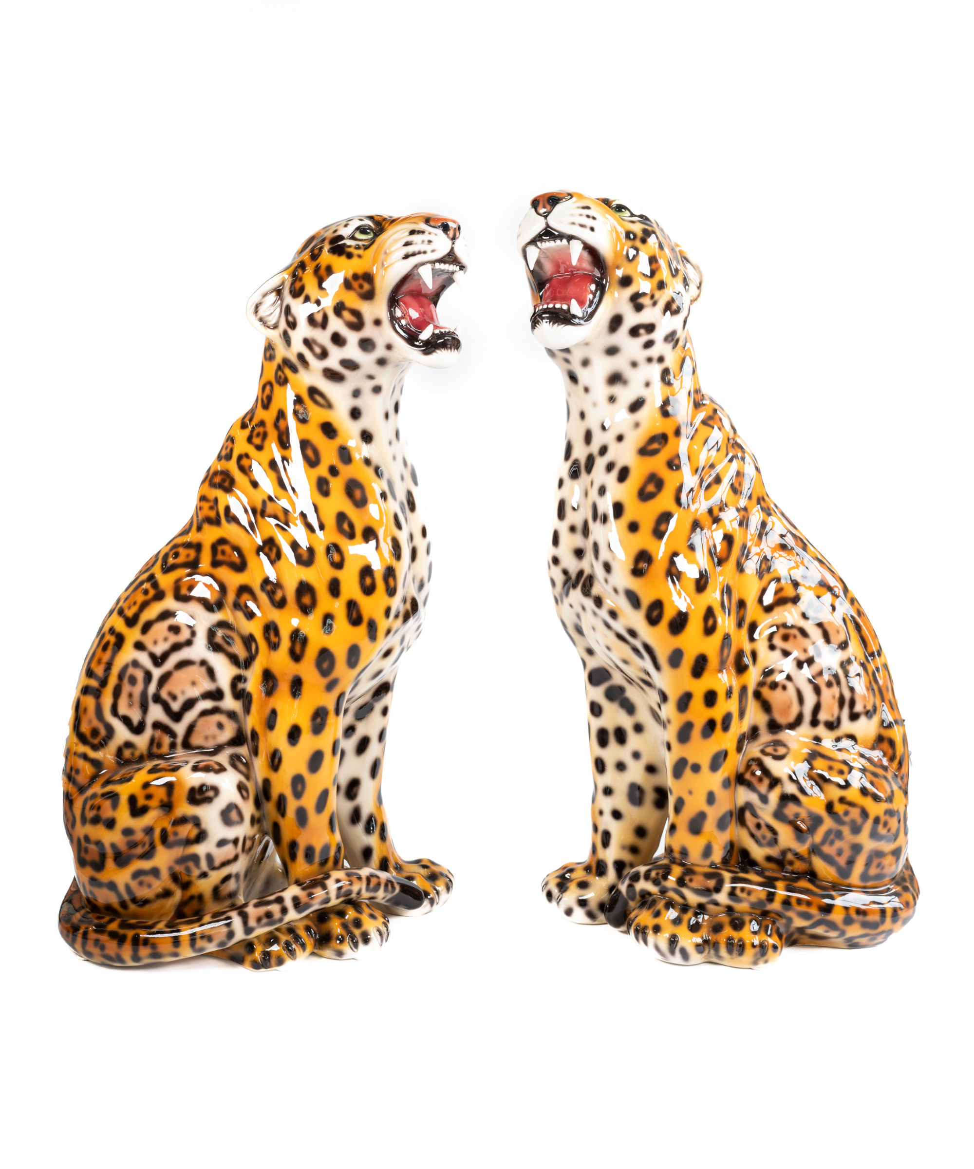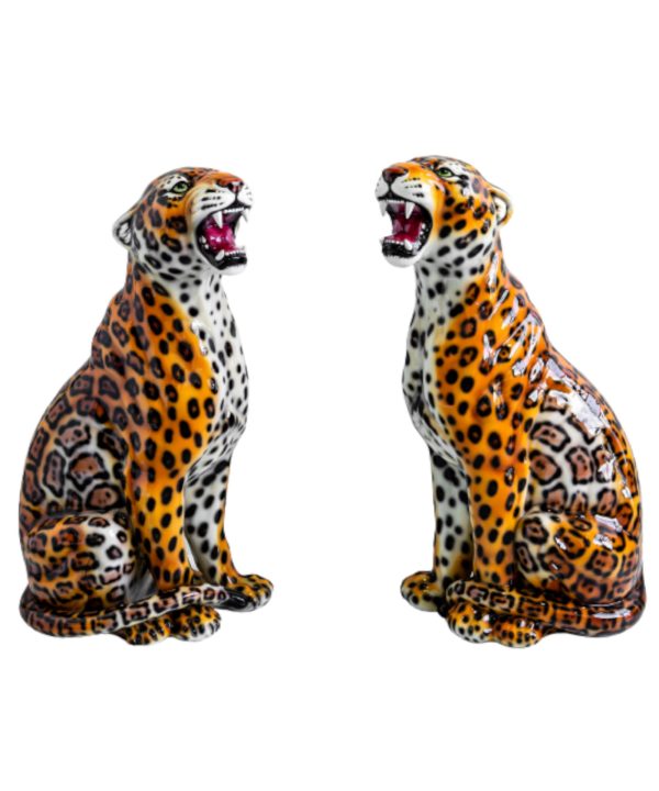 Inspired by the true beauty of the wild, this left and right facing set is beautifully designed and crafted in Italy by master ceramic artisans. Standing at a magnificent 86cm in stature, their traditional markings and ferocious roar only makes them more alluring. A forever piece.