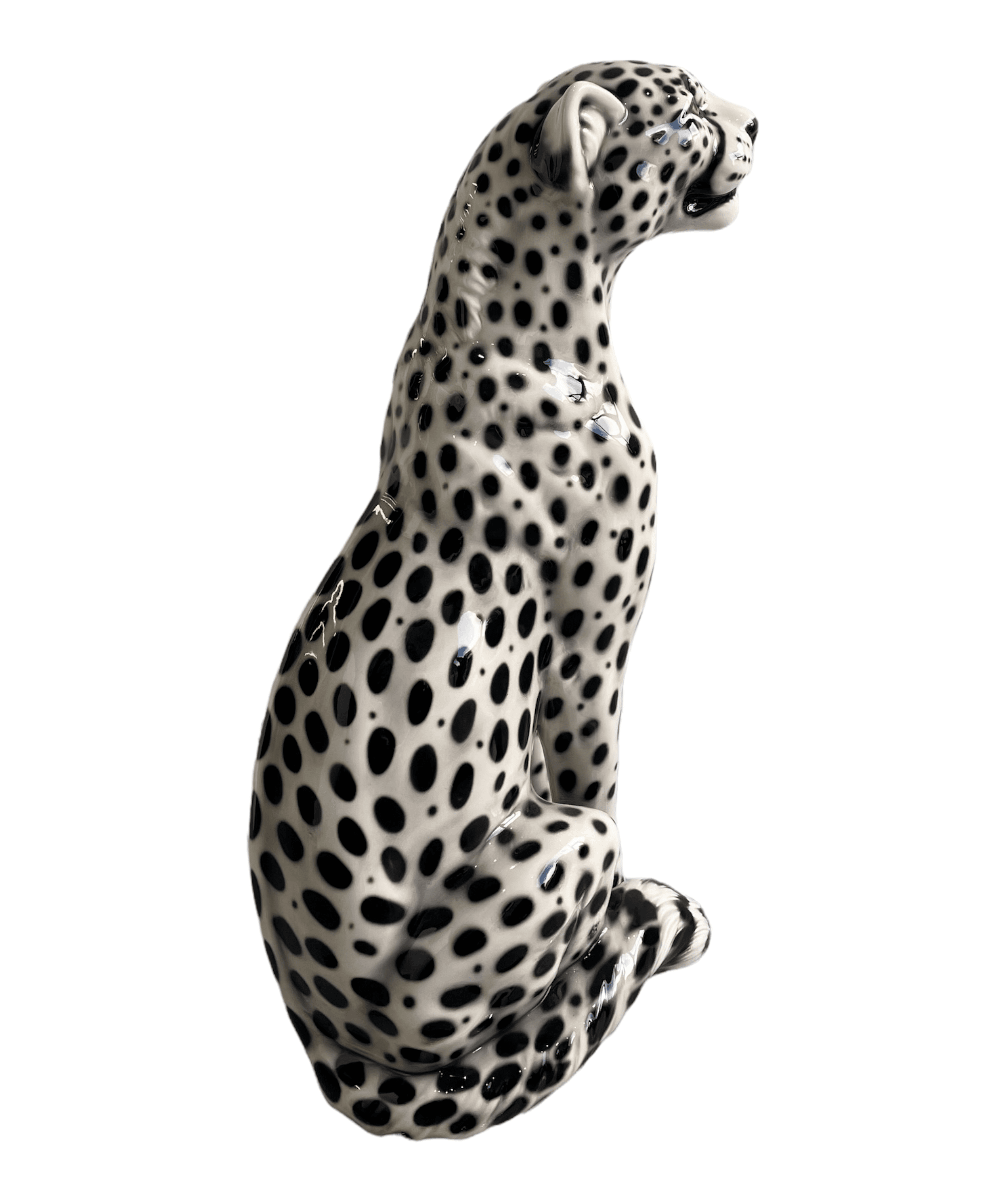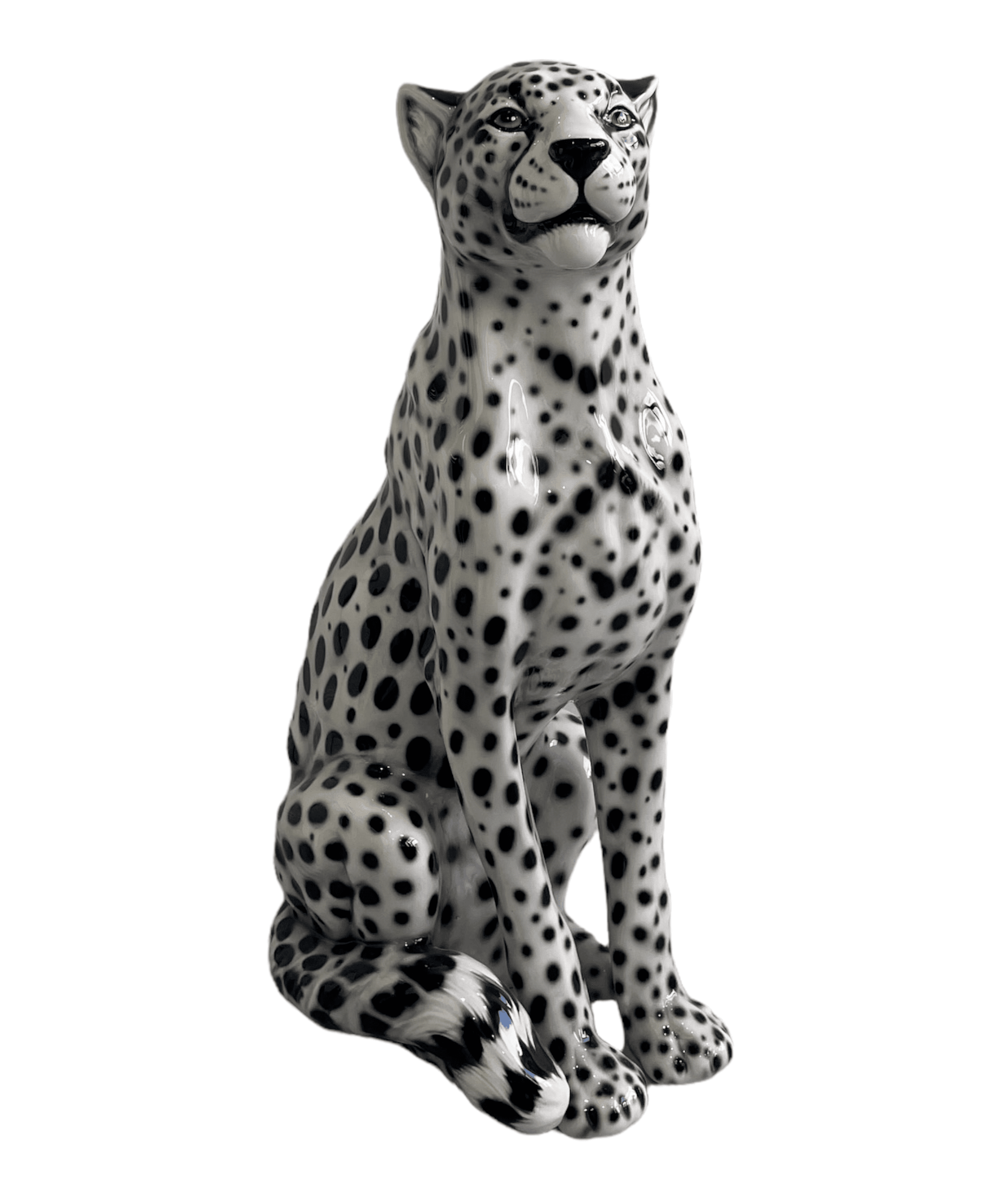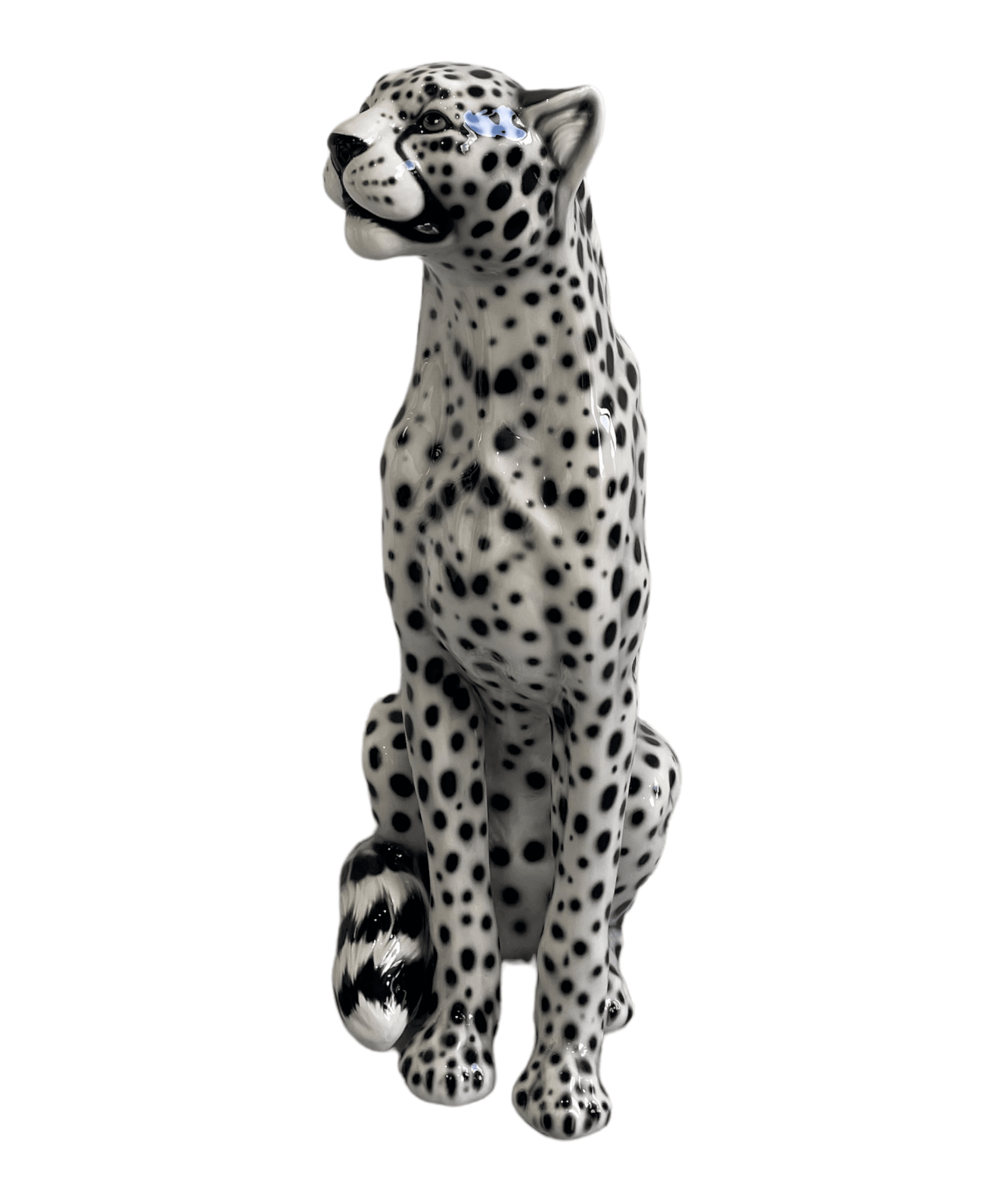 Lilo, a stunning ceramic cheetah sculpture captures the most impressive aspects of creativity. His black & white markings, running from the inside of the eye to the corner of the mouth creates a striking and unique appearance.