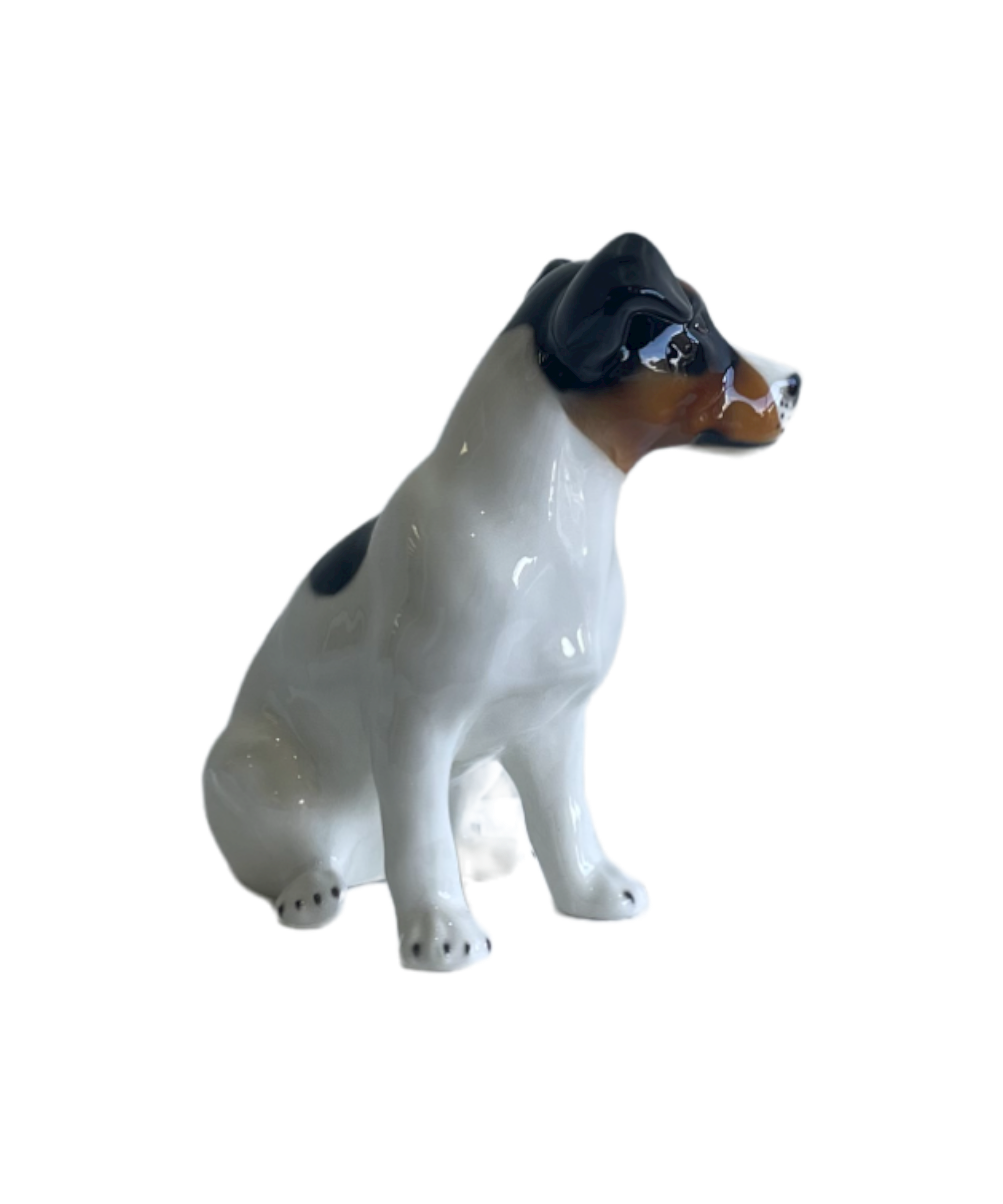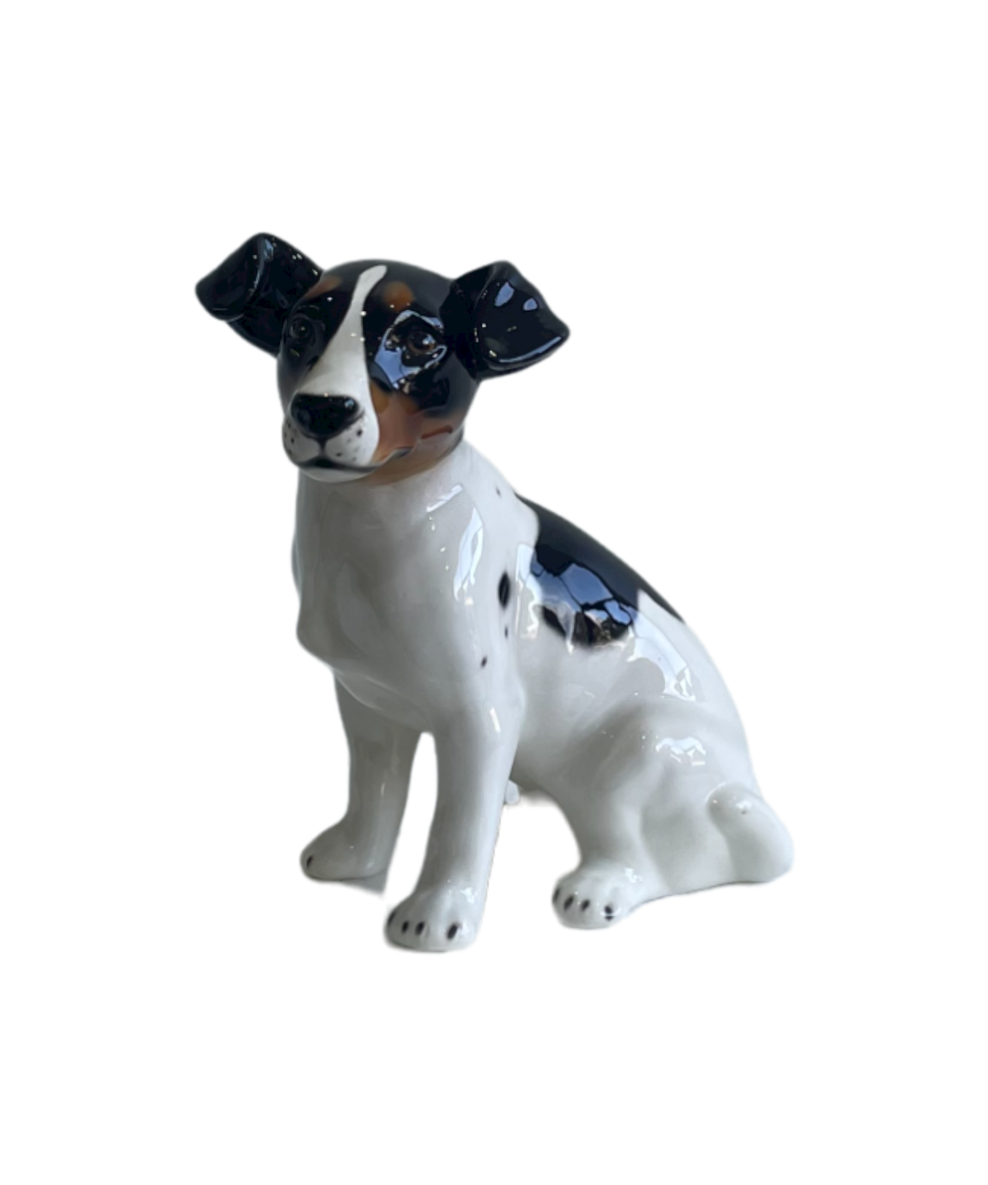 The loyal and active Jack Russell, one of the world’s most popular canines, its traditional patterns captured beautifully in this ceramic recreation.