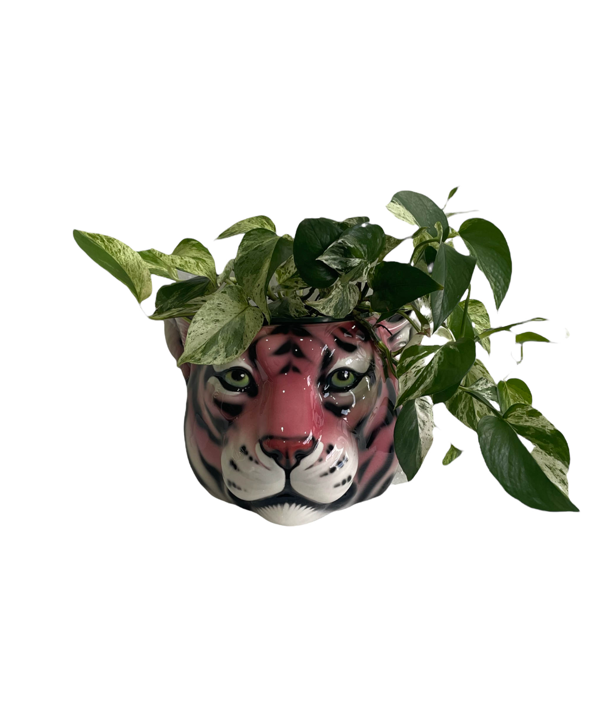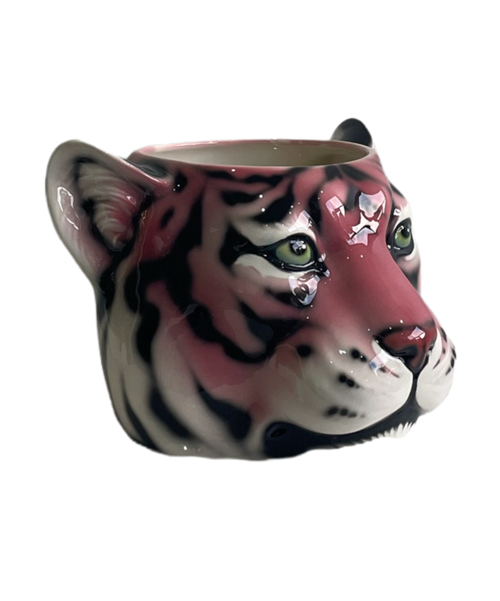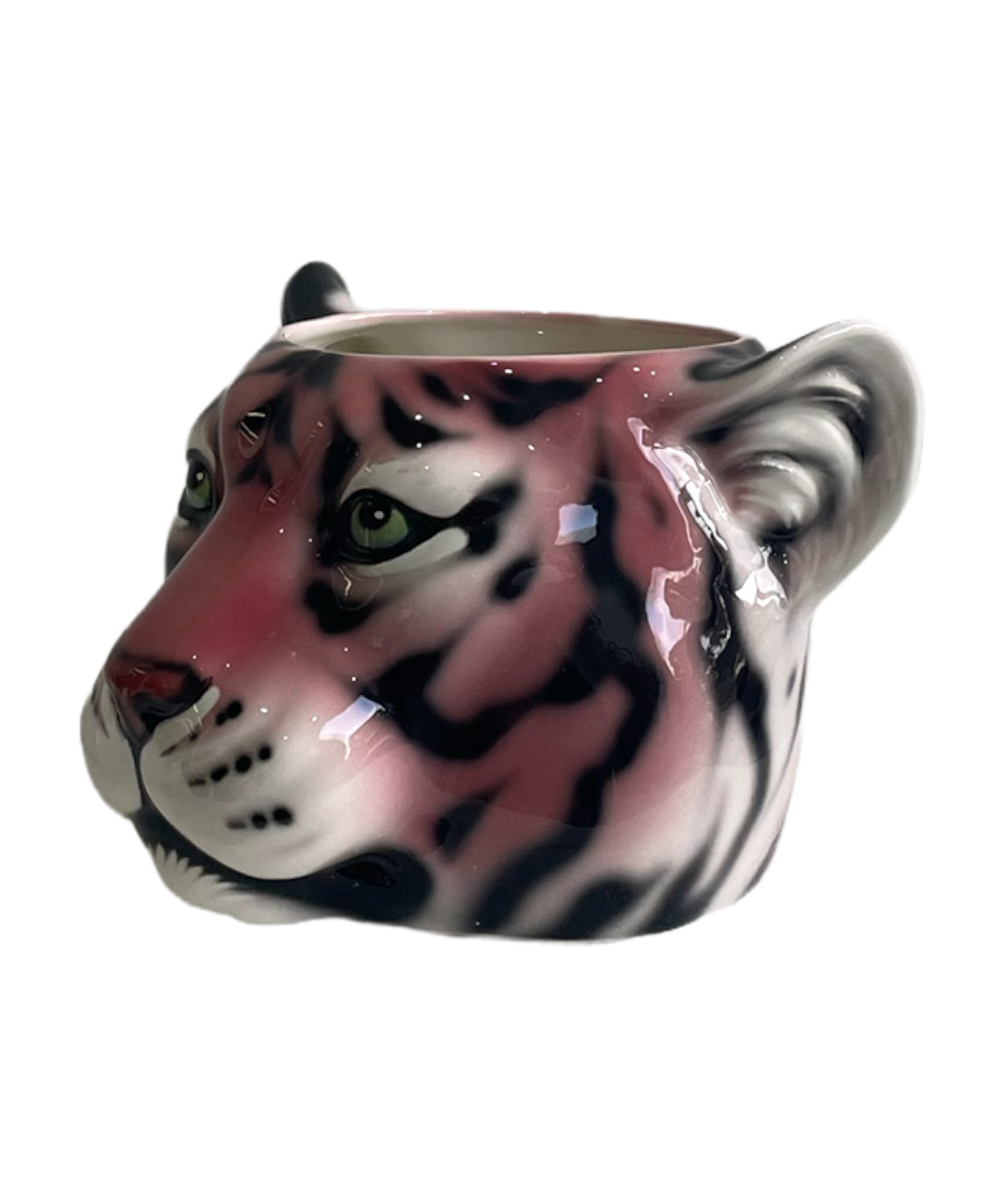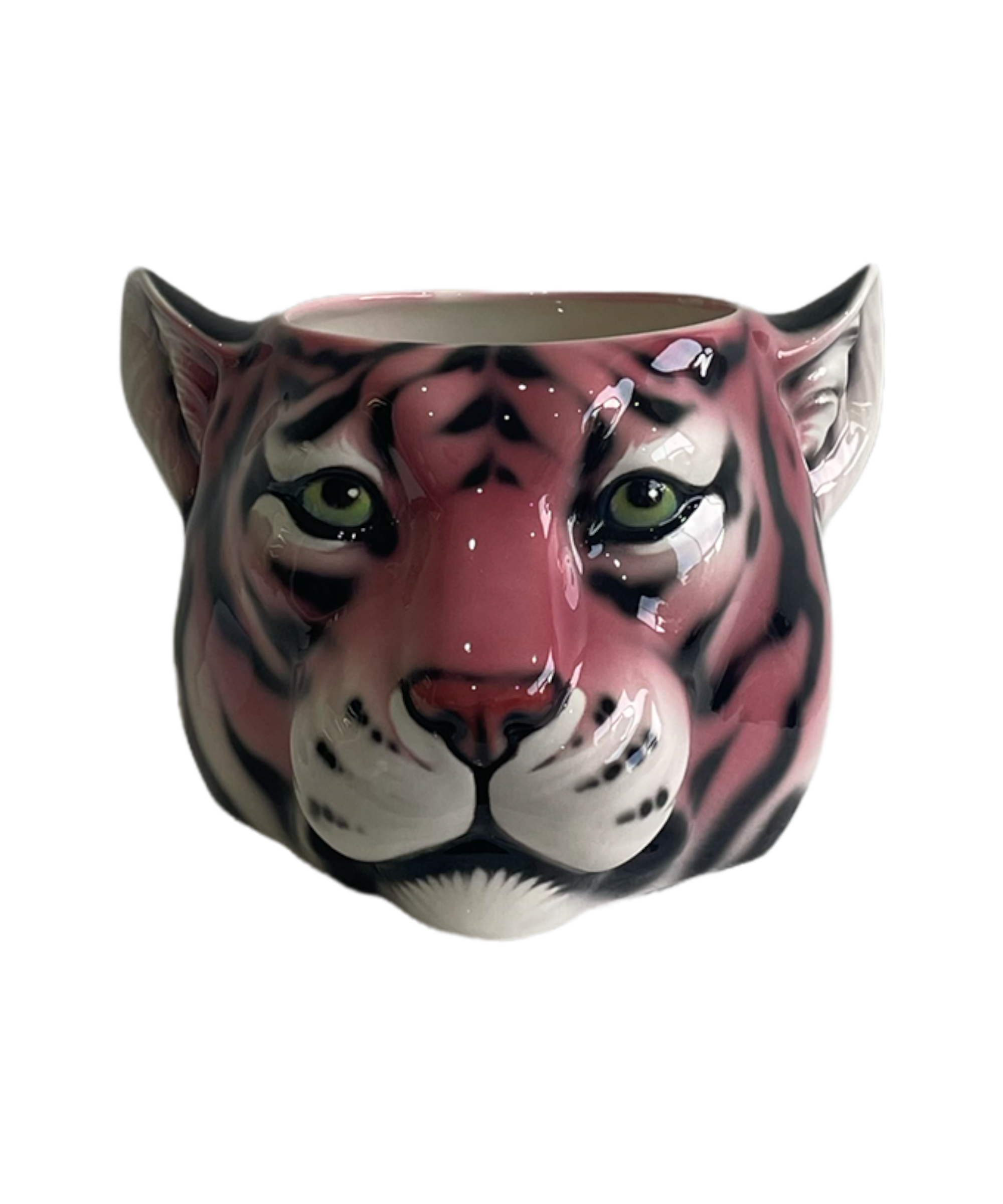 A fantastical interpretation of the pink tiger captured in this ceramic porto vaso with her sassy dark vertical stripes. Ferocious, sophisticated, royal.