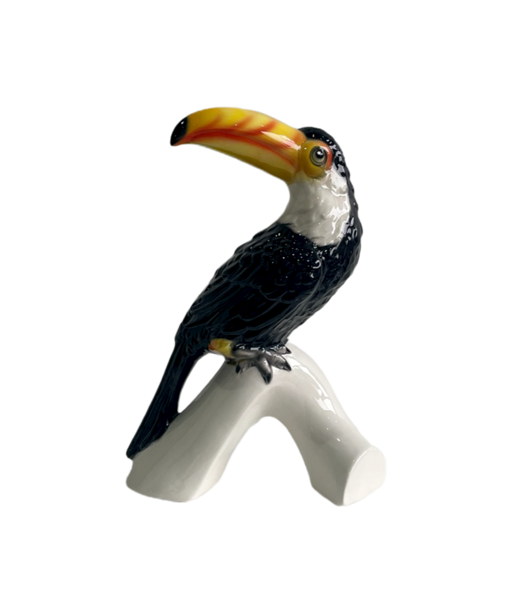 The handsome Brazilian crested toucan renowned for its large colourful bill has been fantastically captured in this stunning ceramic sculpture.