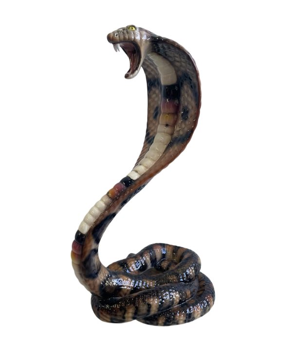 A truly dynamic statement piece that captures the very essence of the wild. The Cobra sculpture at 77cm in height sits comfortably on the floor and is huge in stature it is Made in Italy and hand-painted, it is true work of art. Unique, with slight variations in color and detail, thus, making each one a work of art and one of a kind. Featuring a fierce raised hood and lifelike scales, it’s the perfect bold statement for any space.