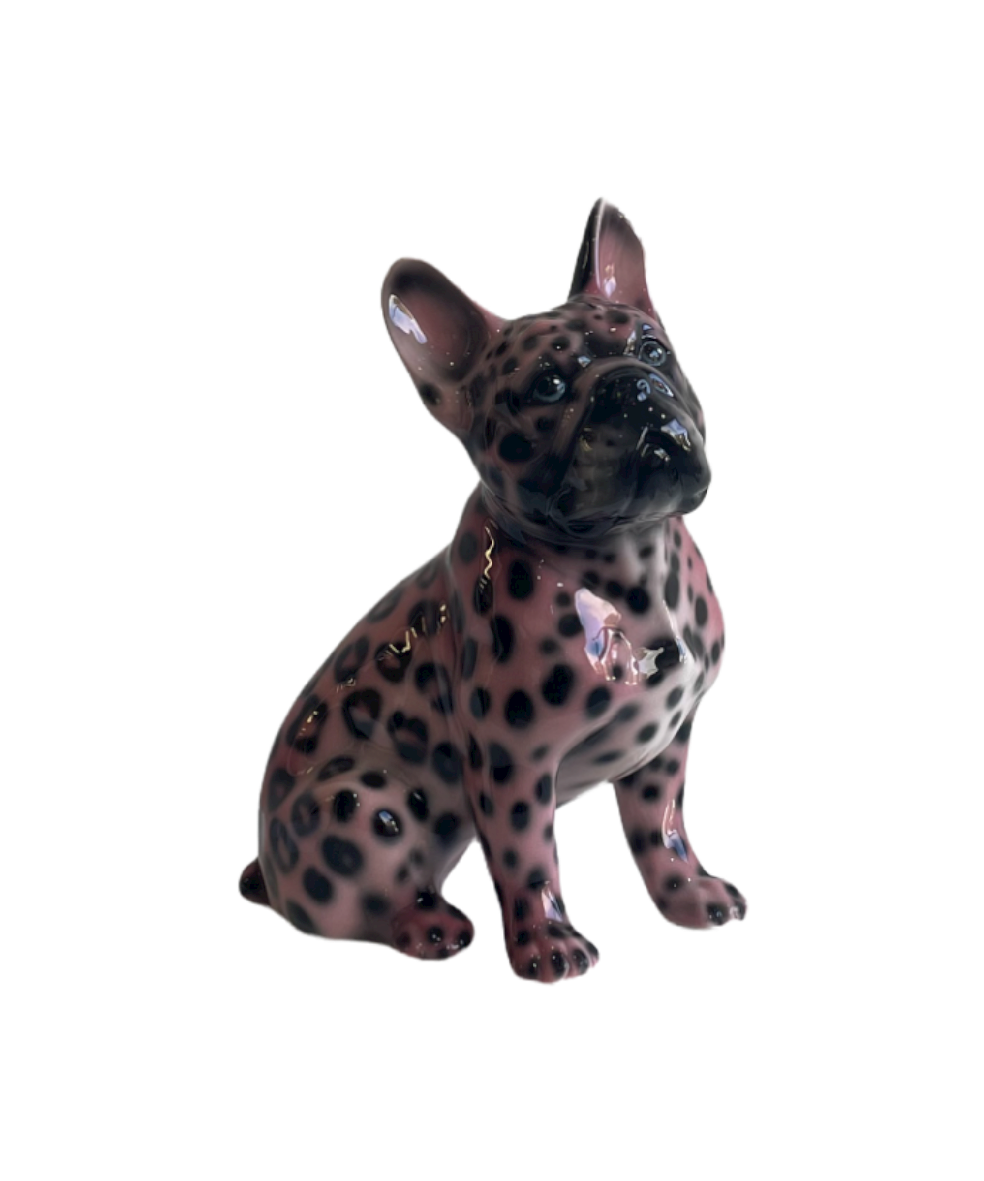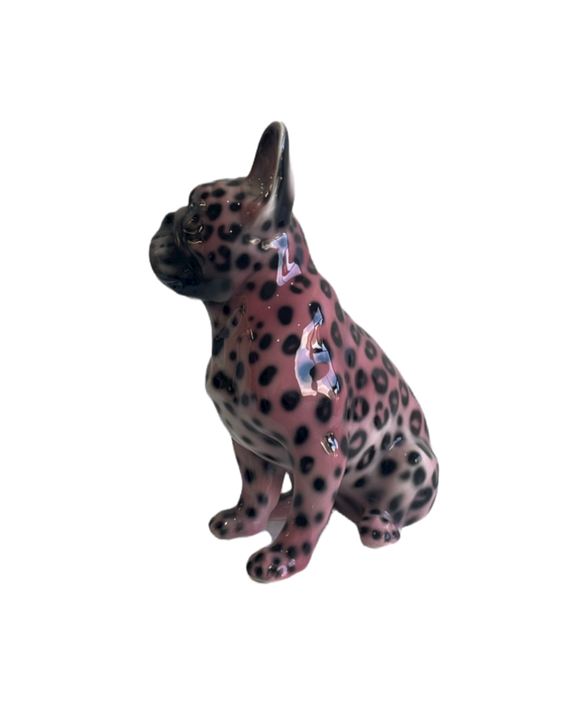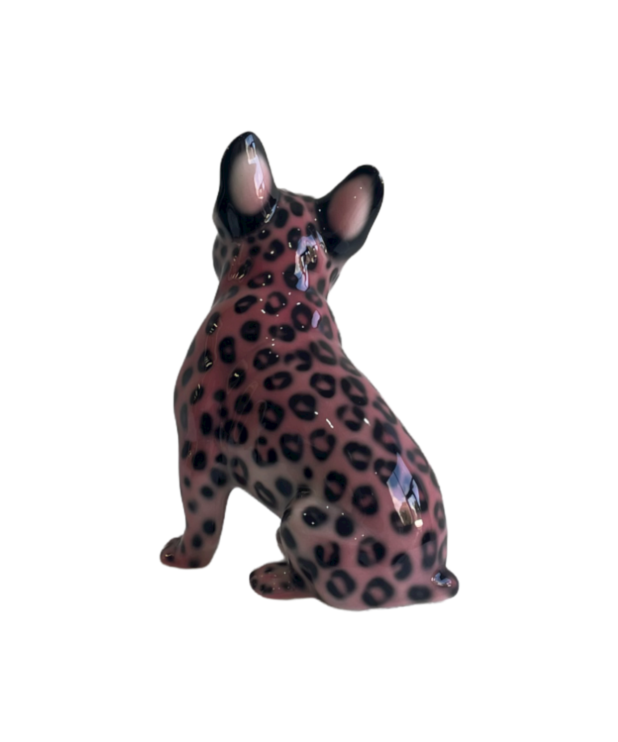 Stunning leopard French bulldog, beautifully crafted with a fantastical design of a pink & black leopard. Designed specifically with diamonds and pearls in mind.