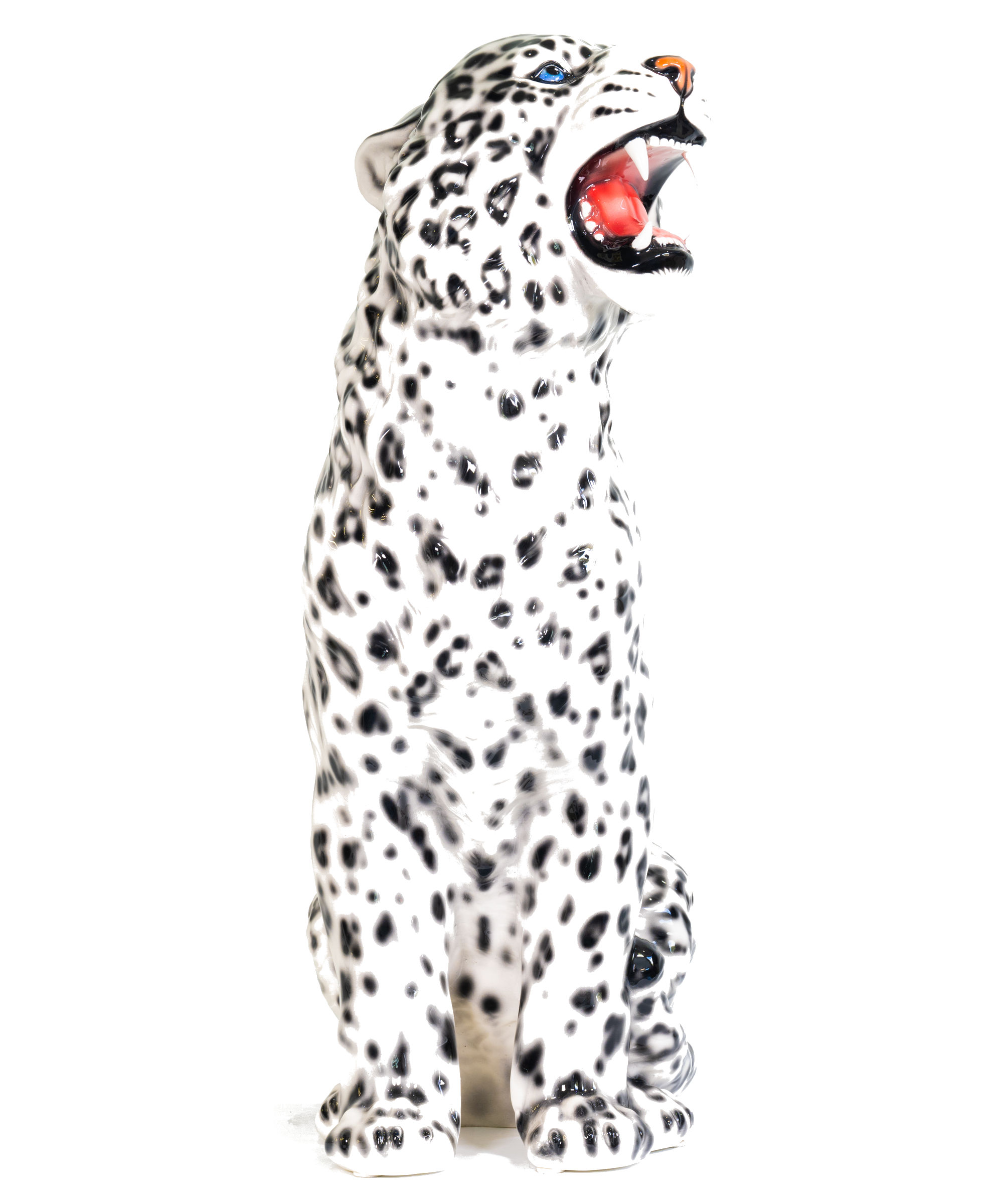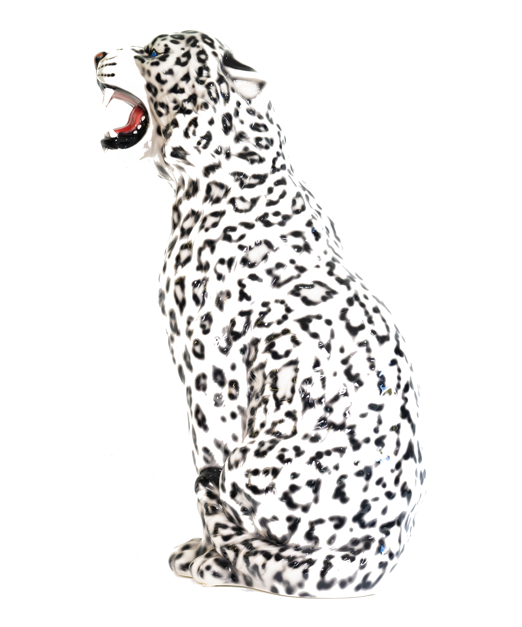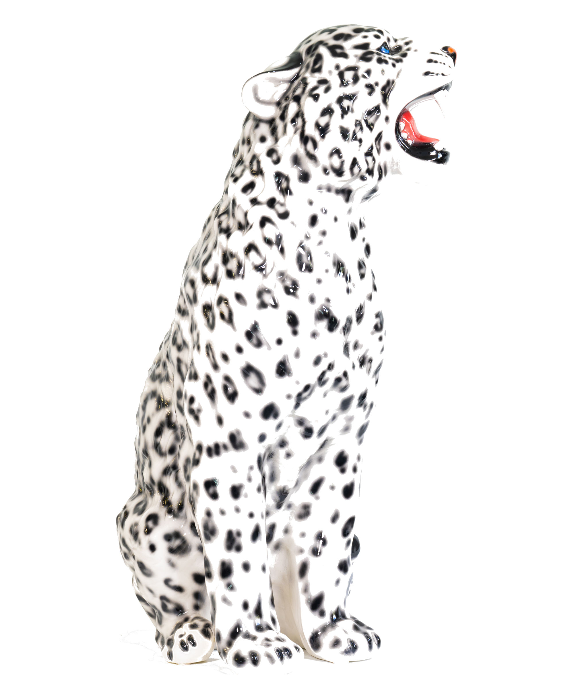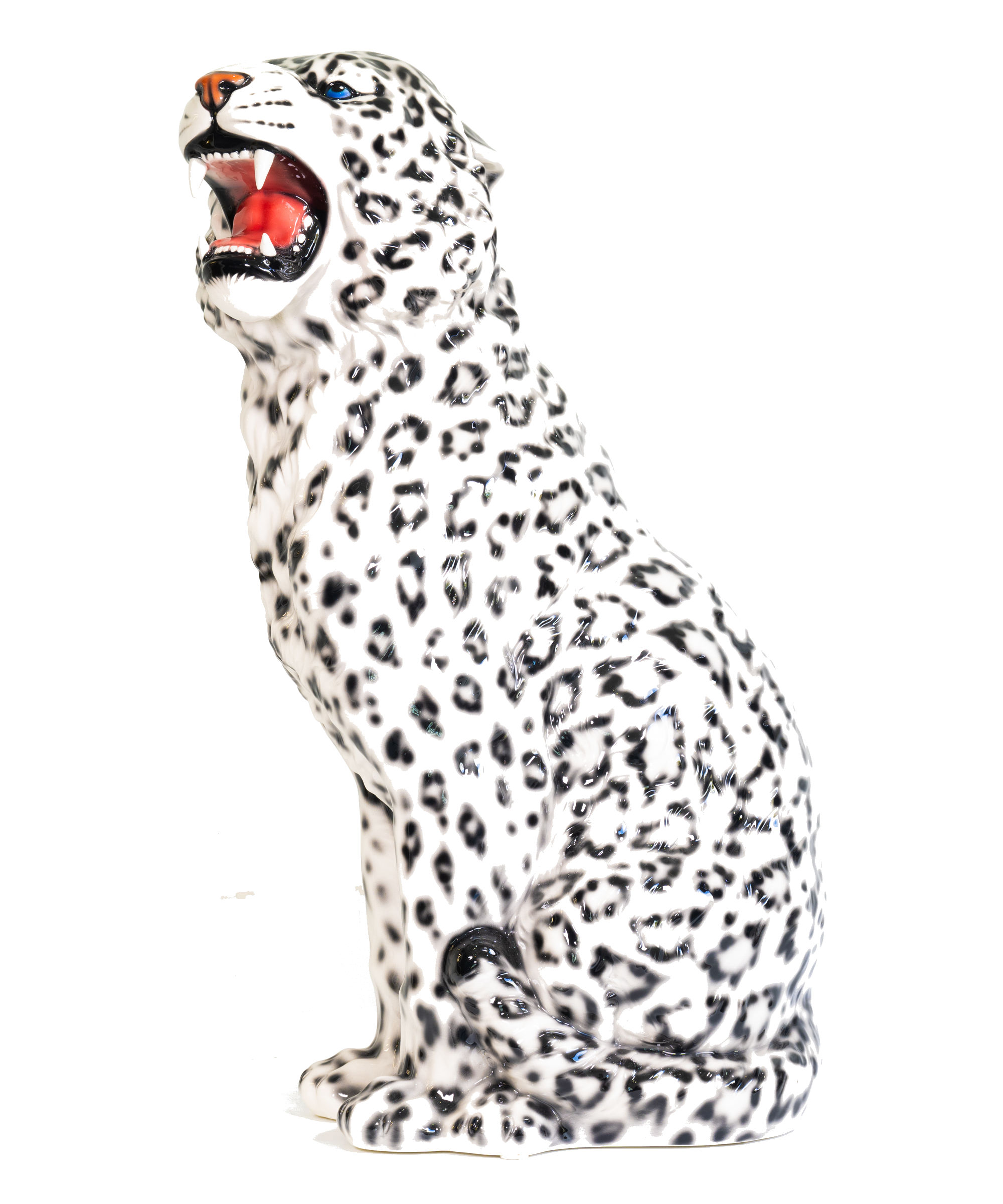 The Snow Leopard, also know as the ounce, displays a stunning white and grey fur with black spots and rosettes. A beautiful ceramic adaptation of a truly wonderful creature.